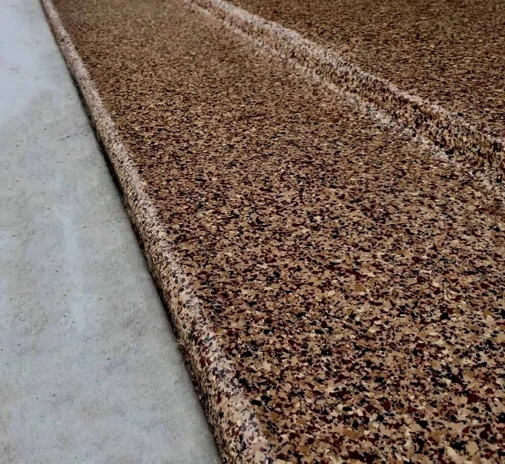 Textured flake systems can improve traction and help reduce slippery conditions.